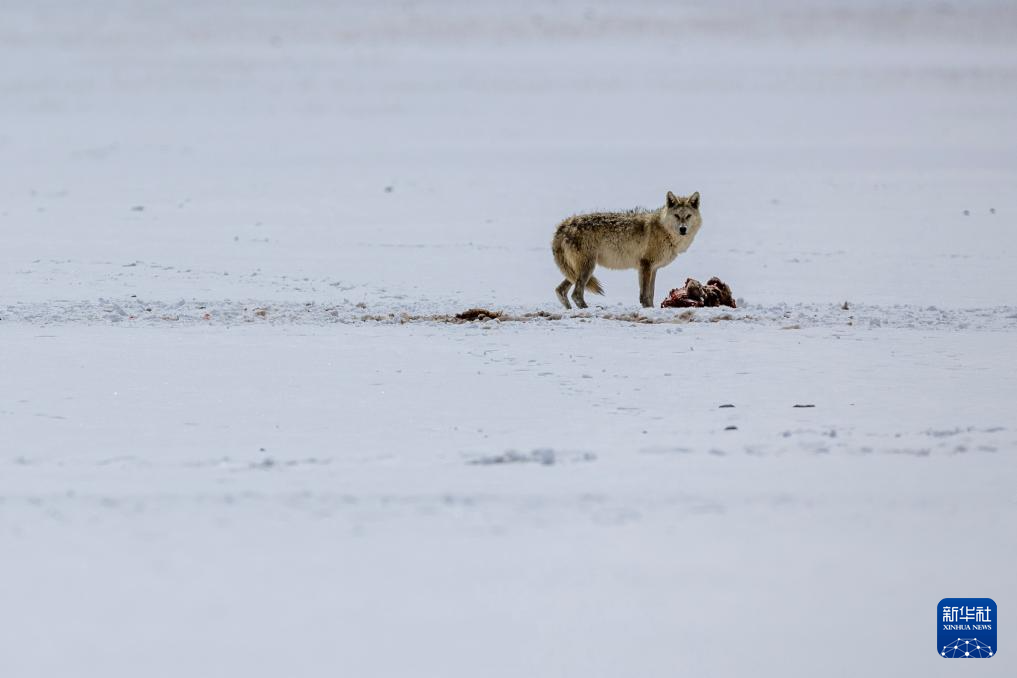 在西藏那曲市尼瑪縣境內的羌塘國家級自然保護區(qū)核心區(qū),一只狼在進食(5月9日攝)。新華社記者 姜帆 攝 ??