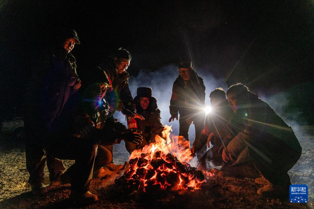 野生動物專業(yè)管護隊員在宿營地里烤火,燃料是野牦牛的糞便(5月10日攝)。新華社記者 丁增尼達 攝 ??