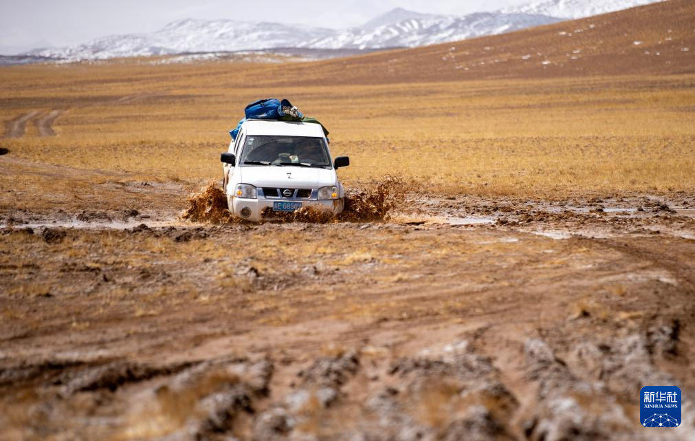 野生動物專業(yè)管護隊員冒著風雪趕到無人區(qū)深處的布查玉管護站(5月7日攝)。新華社記者 姜帆 攝 ??