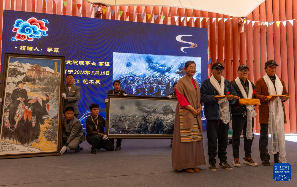 5月18日,吳雨初的友人為西藏牦牛博物館捐贈(zèng)瓷畫《“亞格博”在西藏》。新華社記者 姜帆 攝 ??