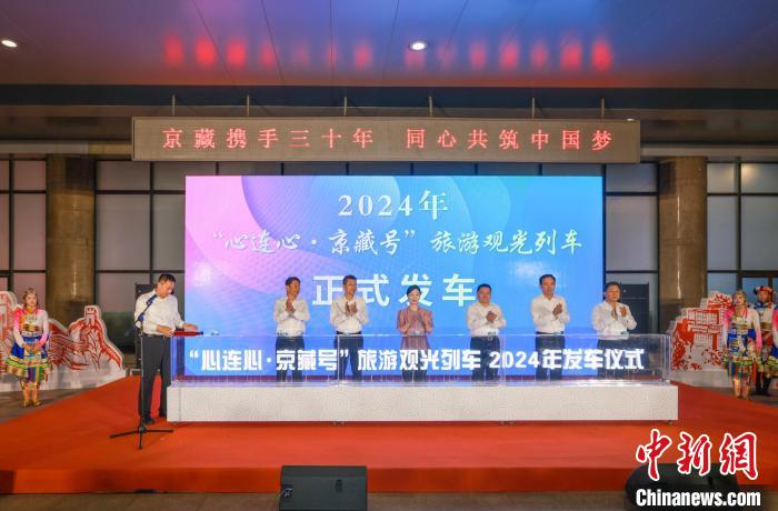 由文化和旅游部、國(guó)鐵集團(tuán)指導(dǎo),北京援藏指揮部、拉薩市城關(guān)區(qū)人民政府等單位組織的2024年“心連心·京藏號(hào)”旅游專列在北京西站首發(fā)。