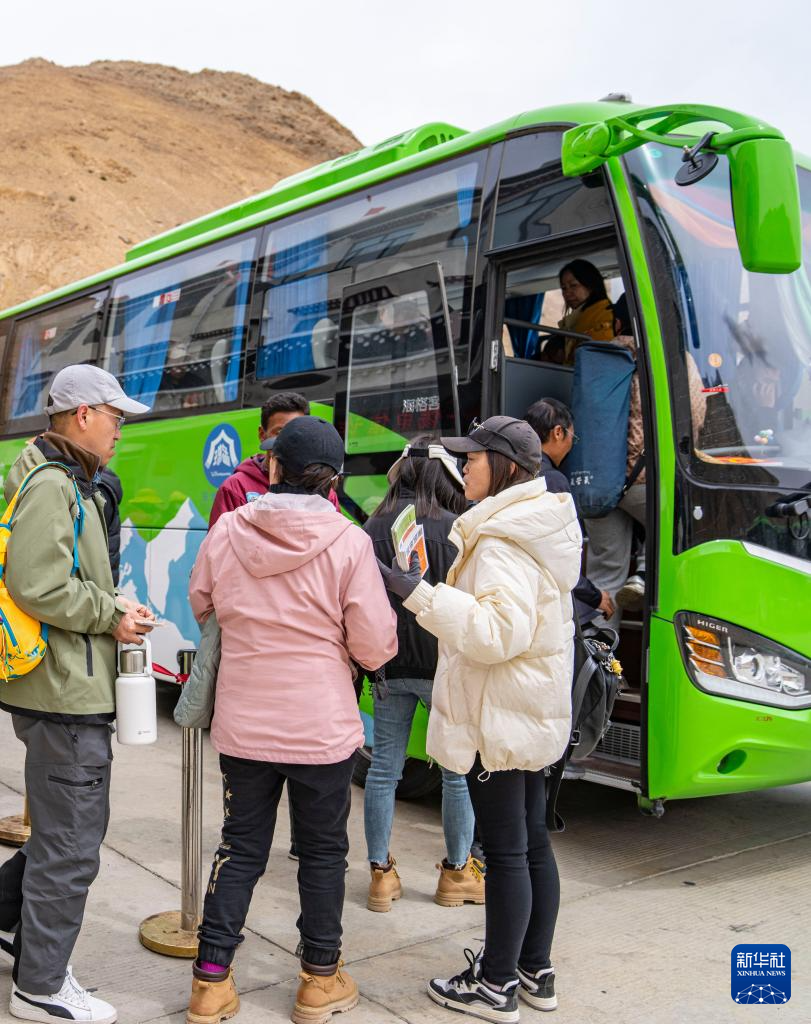 游客在珠穆朗瑪國家公園內(nèi)排隊(duì)換乘環(huán)保大巴車(5月20日攝)。新華社記者 孫非 攝