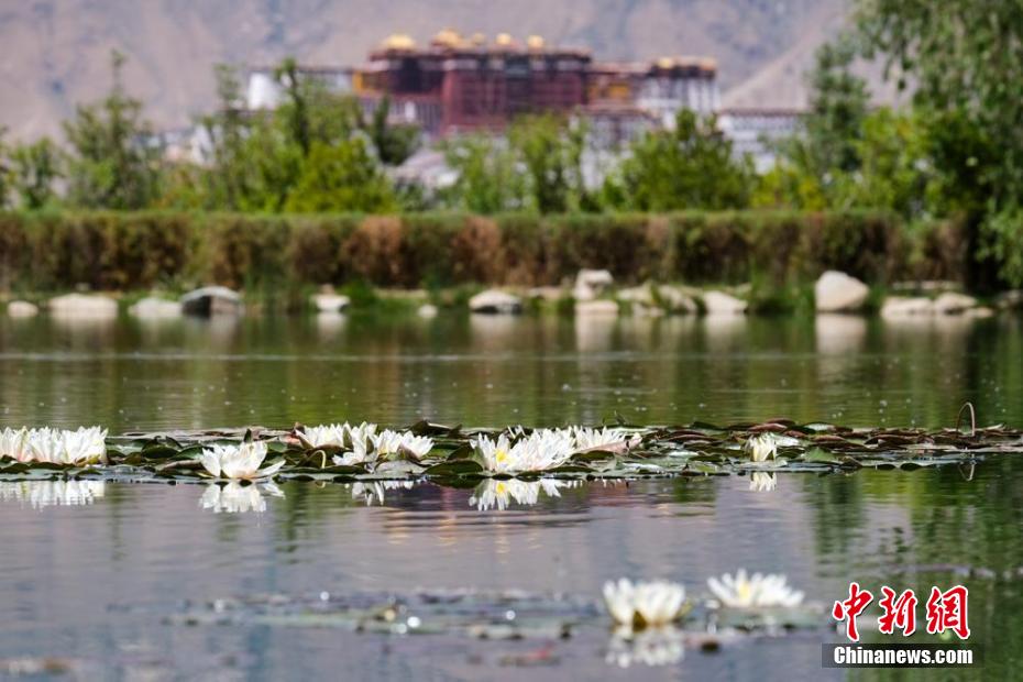 5月28日,拉薩南山公園人工湖中的睡蓮和遠(yuǎn)處的布達(dá)拉宮。
