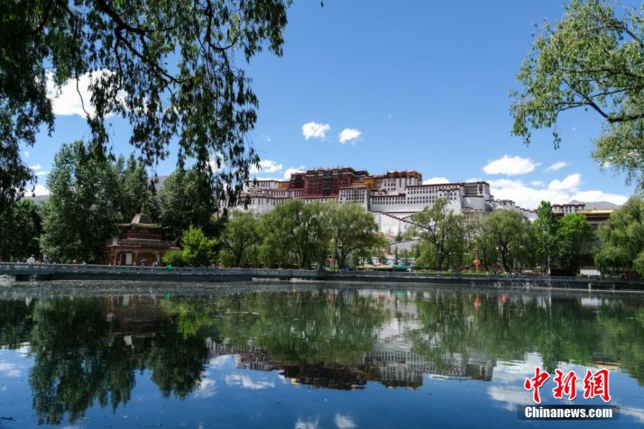 夏日拉薩布達(dá)拉宮倒影風(fēng)光。