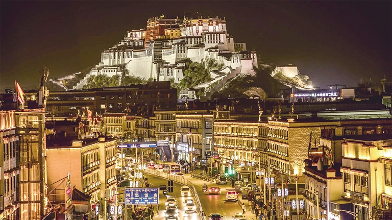 在布達拉宮廣場,地面鋪設的鏡子成了游客們拍照打卡的絕佳場地。傍晚,來自西安的游客孫女士和朋友興致盎然地等待夜幕降臨,準備借著華美的燈光和夜景美美拍照?!拔覀冞@次就是來‘特種兵式旅游’的。”孫女士表示,此次進藏7天的行程,她準備去羊湖、納木措、珠峰大本營。因為工作忙碌、假期太短,她沒有時間體驗“城市漫游”,只能選擇“特種兵式”游玩?!白蠲赖娘L景難道不是在路上嗎?雖然一路很累,但是能看見壯美的風光、領略西藏的無限魅力、享受追逐自由的暢快,累一點也無所謂。”孫女士說道。
