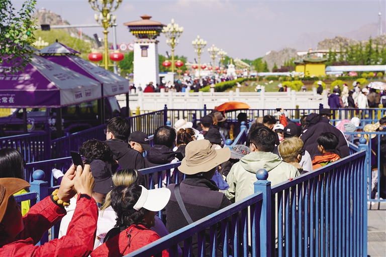 “你喜歡‘特種兵式旅游’還是‘城市漫游’呢?”面對記者的問題,身著民族服飾正在拍照的伍女士回答:“我本人更喜歡‘城市漫游’,畢竟年紀大了。‘特種兵式旅游’太累了,可能不適合我。”伍女士來自四川,今年53歲,喜歡旅行的她經常約著好朋友四處走走。“這次進藏,我們打算就在拉薩待著,逛逛拉薩的大街小巷、博物館、夜市。了解一座城市的文化、歷史,比匆忙的旅行更有趣。”