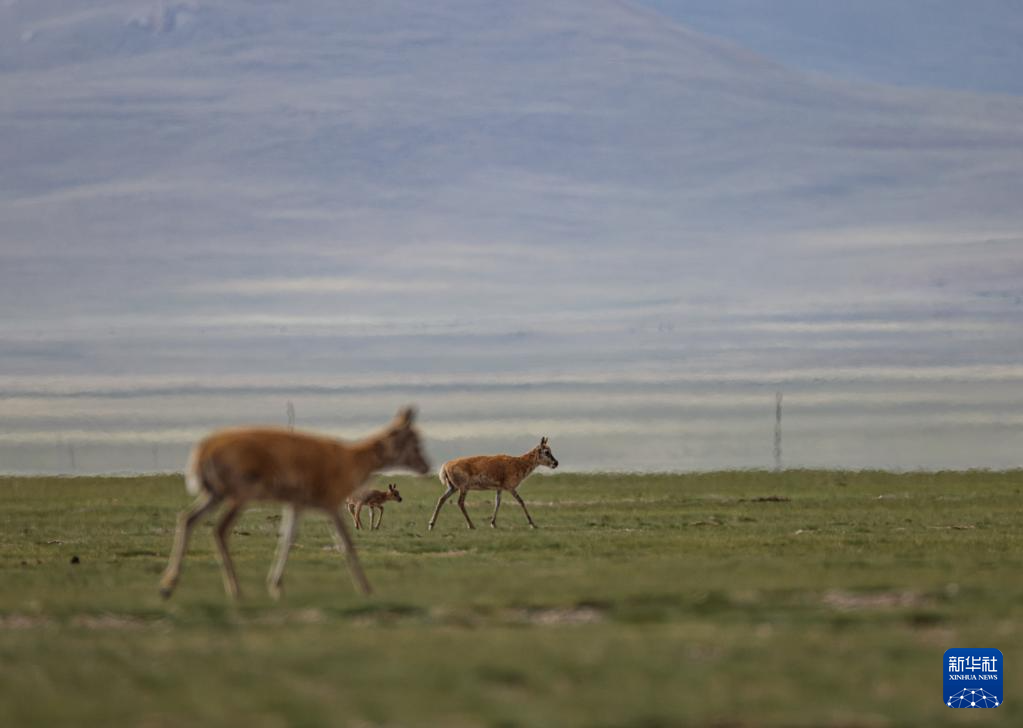 魯確塘草原上的藏羚羊母子(6月16日攝)。新華社記者 旦增尼瑪曲珠 攝
