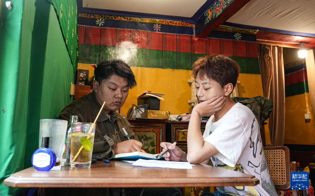 古院咖啡館里年輕的顧客(7月5日攝)。新華社發(fā) 格桑雍珍 攝
