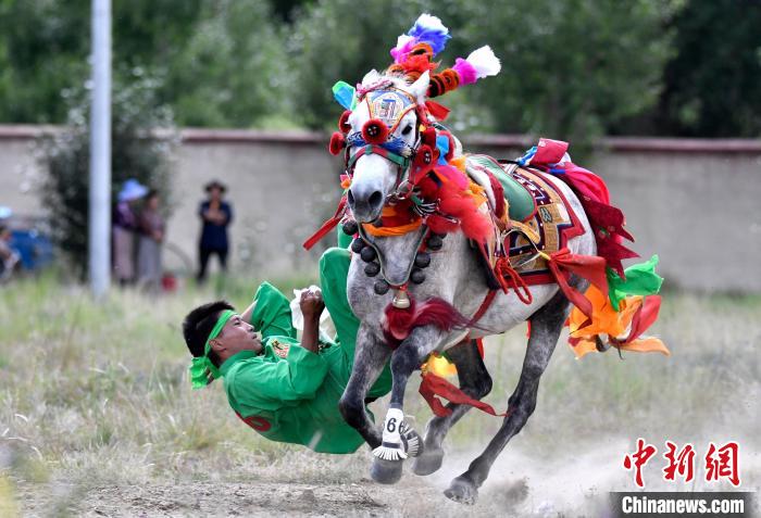 7月27日,西藏拉薩市桑達(dá)村迎來“望果節(jié)”,村民們舉行賽馬活動慶祝。“望果節(jié)”是西藏傳統(tǒng)的豐收節(jié),具體日期隨各地莊稼成熟的時間而變化。“望果節(jié)”期間,按照習(xí)俗,各地都會舉辦賽馬比賽。圖為騎手進行馬術(shù)表演。中新社記者 李林 攝