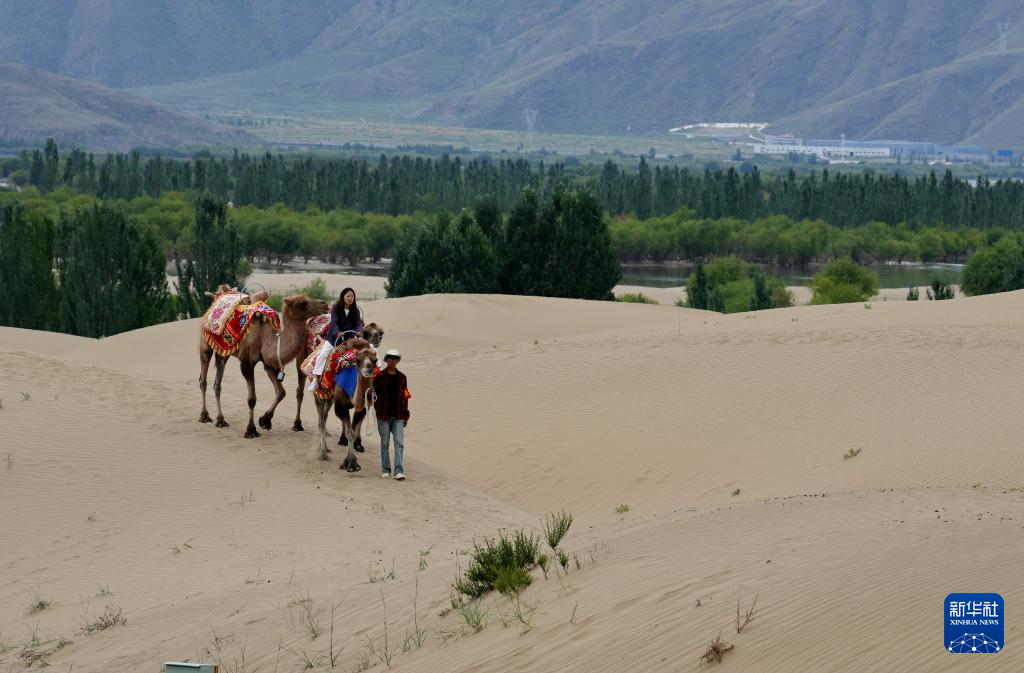 游客在扎囊國家沙漠公園里騎駱駝(7月30日攝)。新華社記者 張汝鋒 攝 ??