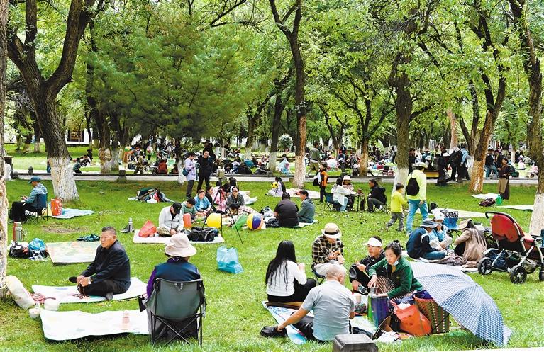 圖為市民群眾在羅布林卡過(guò)林卡。記者 旦增蘭澤 攝