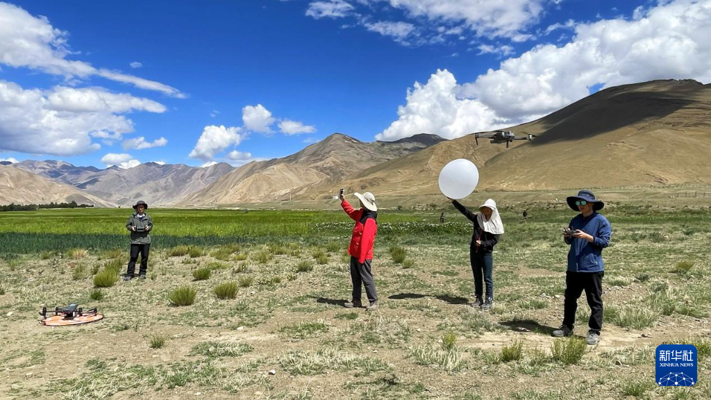 團隊開展探空氣球大氣廓線觀測和無人機熱紅外影像獲取。(中國科學院空天信息創(chuàng)新研究院供圖)