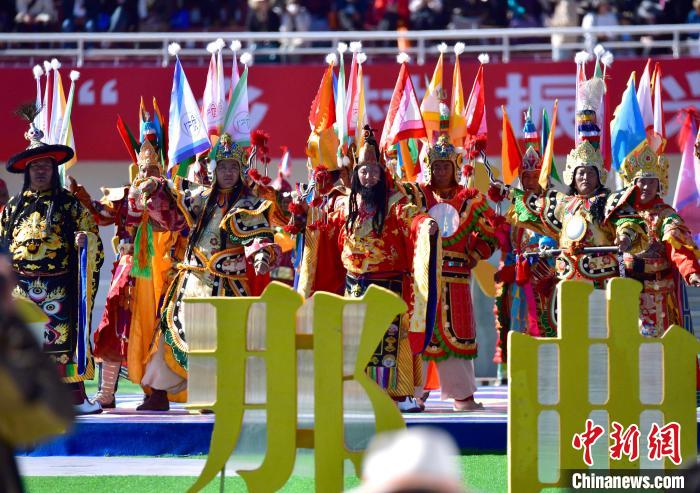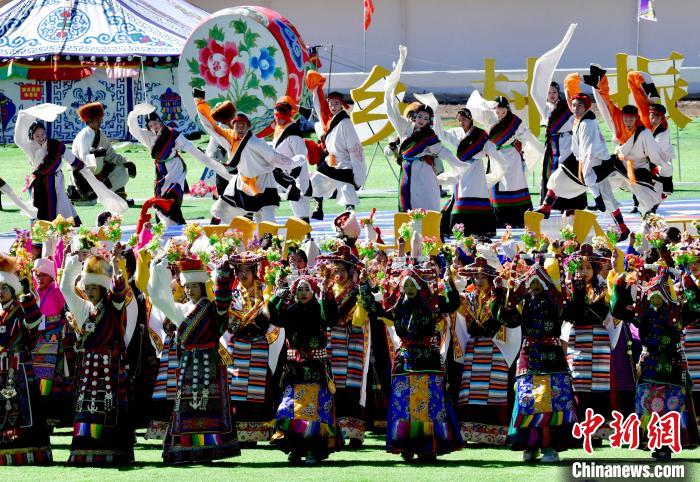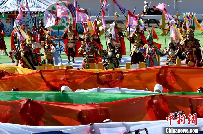 8月10日,2024年那曲恰青賽馬節(jié)暨第三屆“鄉(xiāng)村振興 那曲奮進(jìn)”活動開幕式在那曲市賽馬場舉行,精彩的文藝歌舞、馬術(shù)表演等展示著羌塘草原上的無窮魅力和活力。圖為開幕式文藝表演現(xiàn)場。中新社記者 李林 攝