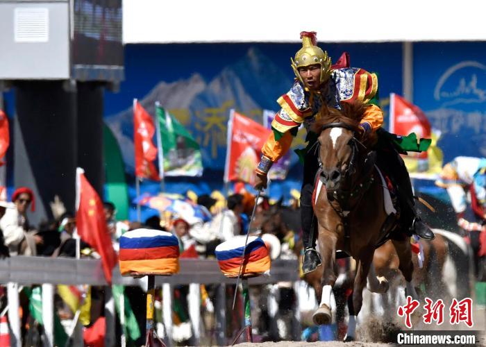 8月10日,2024年那曲恰青賽馬節(jié)暨第三屆“鄉(xiāng)村振興 那曲奮進(jìn)”活動開幕式在那曲市賽馬場舉行,精彩的文藝歌舞、馬術(shù)表演等展示著羌塘草原上的無窮魅力和活力。圖為開幕式上的馬術(shù)表演。中新社記者 李林 攝