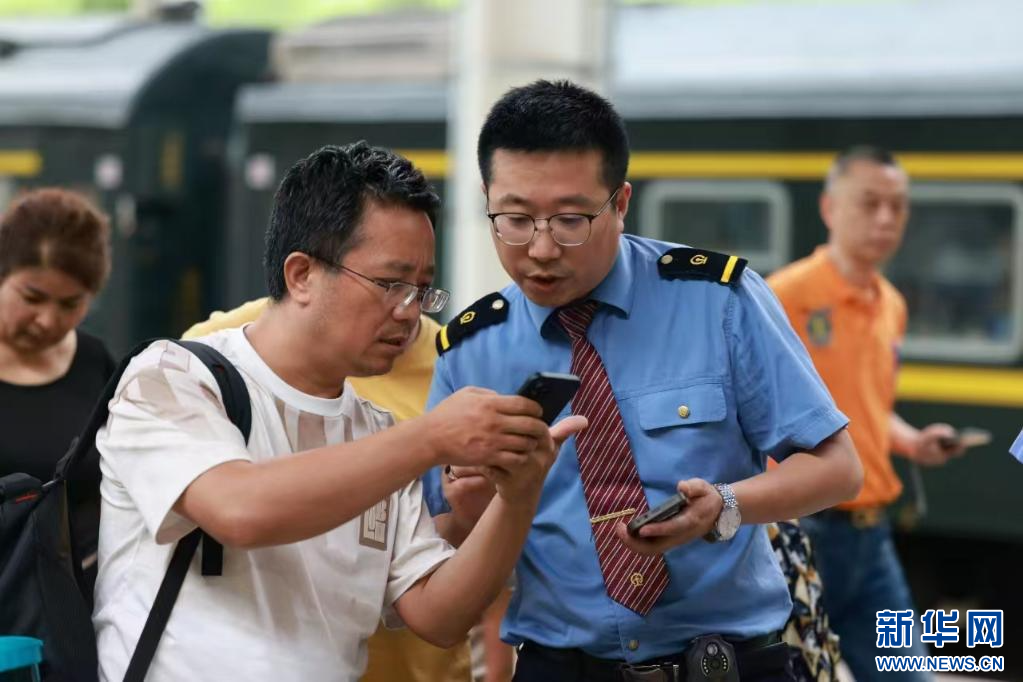 鐵路工作人員正在幫助旅客查看核對(duì)乘車(chē)信息。(中國(guó)鐵路青藏集團(tuán)公司供圖)