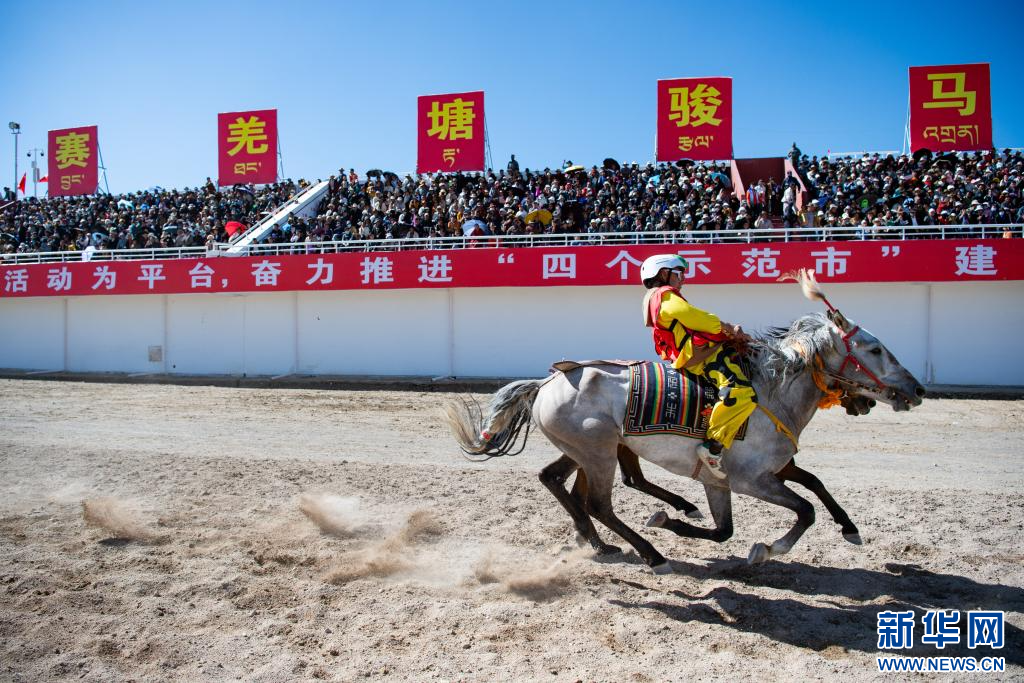 8月11日,騎手在場名馬冠軍比賽中。新華網(wǎng) 旦增努布 攝