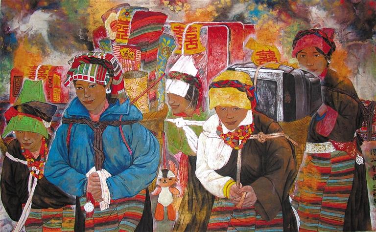“藏族傳統(tǒng)文化不僅是中華民族文化的重要組成部分,也是世界文化的一角。將藏漢文化有機(jī)融為一體,是藝術(shù)家的歷史責(zé)任,也是藝術(shù)家取之不盡、用之不竭的永恒題材。”西藏美術(shù)家協(xié)會(huì)理事、二級(jí)美術(shù)師、西藏美術(shù)館展陳部主任周明暉說(shuō)。