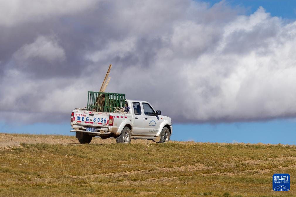 野保隊(duì)員將棕熊運(yùn)送至西藏那曲市尼瑪縣的羌塘國(guó)家級(jí)自然保護(hù)區(qū)核心區(qū)(8月30日攝)。新華社記者 姜帆 攝 ??