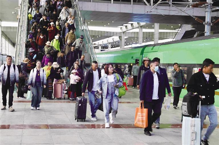 同時(shí),為了進(jìn)一步拓展進(jìn)疆入青通道,加開(kāi)了西寧至蘭州西、烏魯木齊間各1對(duì)動(dòng)車組臨客,為旅客提供了更加便捷的出行選擇。另外,在拉日鐵路通車10周年之際,在拉薩至日喀則間每日安排5對(duì)城際動(dòng)車組上線運(yùn)行,滿足西藏各族人民出行需求。