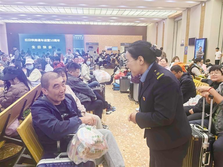 暑運(yùn)期間,青藏集團(tuán)公司深入開(kāi)展客運(yùn)提質(zhì)專項(xiàng)行動(dòng),各大車站深化構(gòu)建以“天路格?;ā睘楹诵牡能囌酒放萍海纬闪撕w問(wèn)詢、訂票、接送、特殊重點(diǎn)服務(wù)等各環(huán)節(jié)的服務(wù)鏈,有效提高了品牌影響力。落實(shí)站車餐飲供水、衛(wèi)生保潔、空調(diào)制冷等基本服務(wù)措施,加強(qiáng)老幼病殘?jiān)械戎攸c(diǎn)旅客愛(ài)心服務(wù),做好12306在線選鋪、學(xué)生優(yōu)惠票等客運(yùn)新規(guī)的宣傳普及工作,提升旅客出行體驗(yàn)。暑運(yùn)期間,青藏集團(tuán)公司同步做好糧食等國(guó)計(jì)民生重點(diǎn)物資的運(yùn)輸組織工作,發(fā)揮“智慧天路”統(tǒng)一指揮、統(tǒng)一調(diào)度的優(yōu)勢(shì),為重點(diǎn)物資開(kāi)辟“綠色通道”,確保重點(diǎn)物資快速送達(dá),服務(wù)人民群眾生產(chǎn)生活,共計(jì)發(fā)送貨物395萬(wàn)噸。