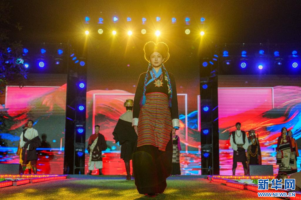 9月24日,模特展示日喀則服飾。新華網(wǎng)發(fā) 喬柯嵐 攝
