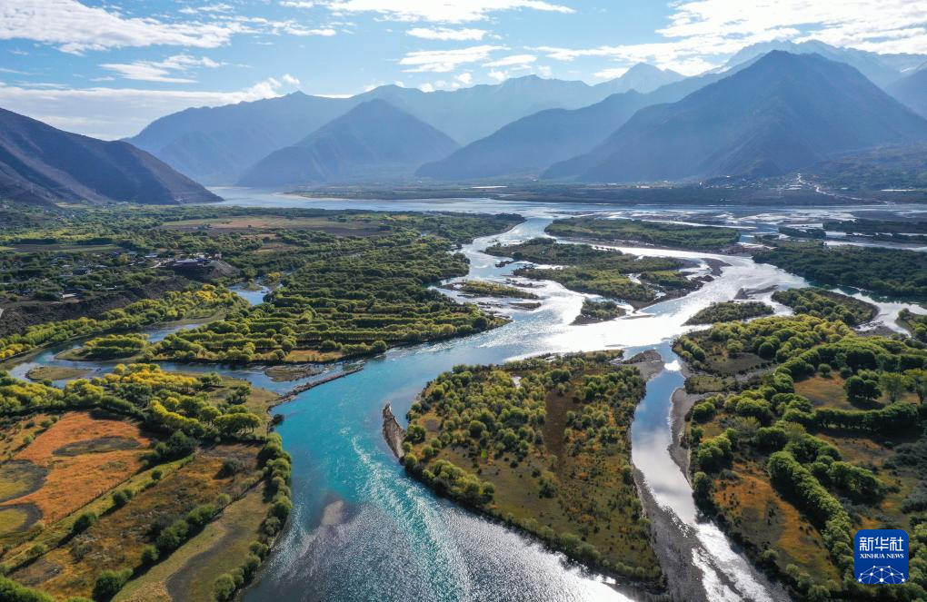 這是在林芝雅尼國家濕地公園尼洋河畔拍攝的生態(tài)監(jiān)測系統(tǒng)(10月24日攝,無人機照片)。新華社記者 劉天宇 攝??