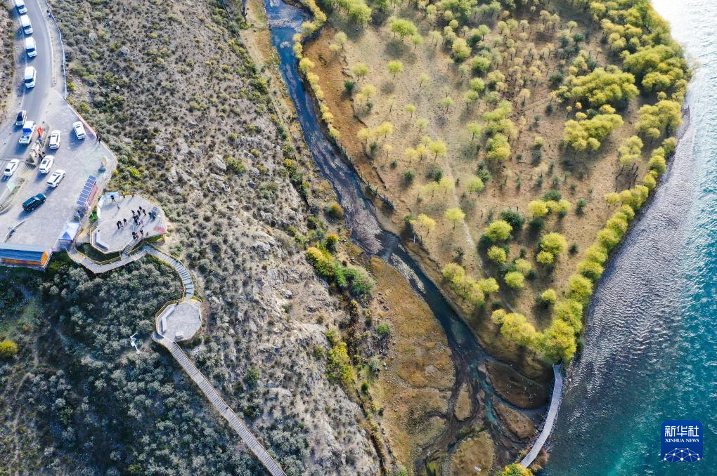 西藏林芝雅尼國家濕地公園內(nèi)的觀景臺和步行棧道(10月24日攝,無人機照片)。新華社記者 李賀 攝??