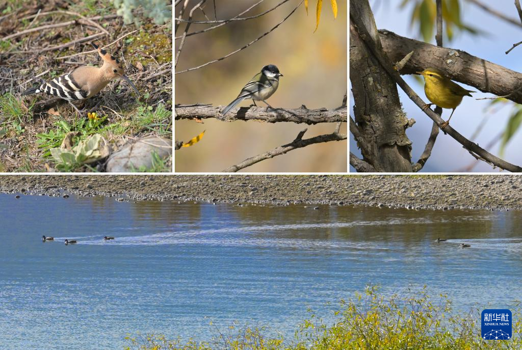 這是10月24日在西藏林芝雅尼國家濕地公園內(nèi)拍攝的鳥類(拼版照片)。新華社記者 李賀 攝??