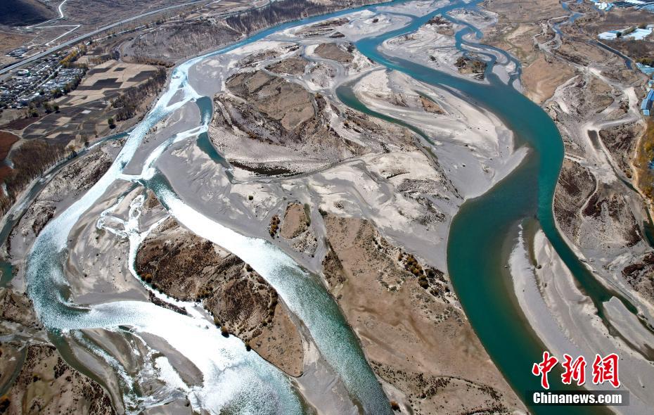 拉薩河藏語稱為“吉曲”,意為“幸福河”,是雅魯藏布江的主要支流。深秋時節(jié),拉薩河水系猶如發(fā)辮,十分壯美。圖為11月3日拉薩河辮狀水系。(無人機(jī)照片)