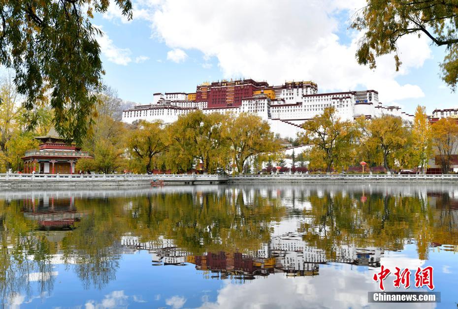 11月6日,位于西藏拉薩的世界文化遺產(chǎn)布達拉宮在周圍樹葉的映襯下色彩斑斕。中新社記者 李林 攝