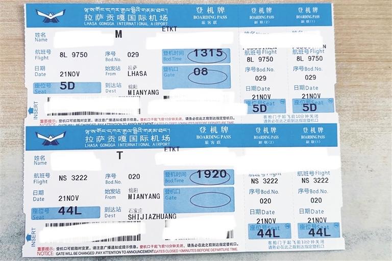 經(jīng)綿陽(yáng)中轉(zhuǎn)的跨航司中轉(zhuǎn)登機(jī)牌樣式。