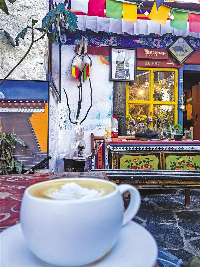 離開曲蘇大院,記者來到了另一個取景地—貢桑孜大院。與曲蘇大院相比,貢桑孜大院則顯得更加現(xiàn)代和時尚。走進大院,就能聞到醇厚的咖啡香氣,院子的角落里有一家咖啡店,這家咖啡店是旦增格桑和朋友共同經(jīng)營的。