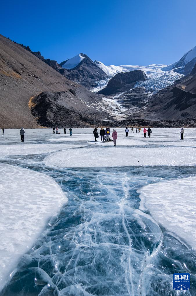 游客在恰央錯(cuò)結(jié)冰的湖面上游玩(1月26日攝)。新華社記者 丁增尼達(dá) 攝 ??