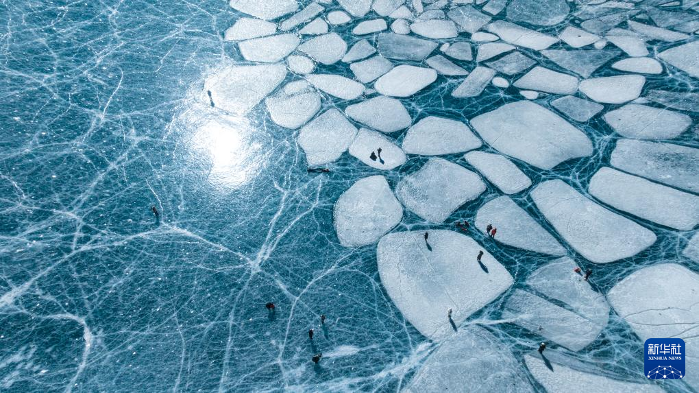 游客在恰央錯(cuò)結(jié)冰的湖面上游玩(1月26日攝,無人機(jī)照片)。新華社記者 丁增尼達(dá) 攝 ??