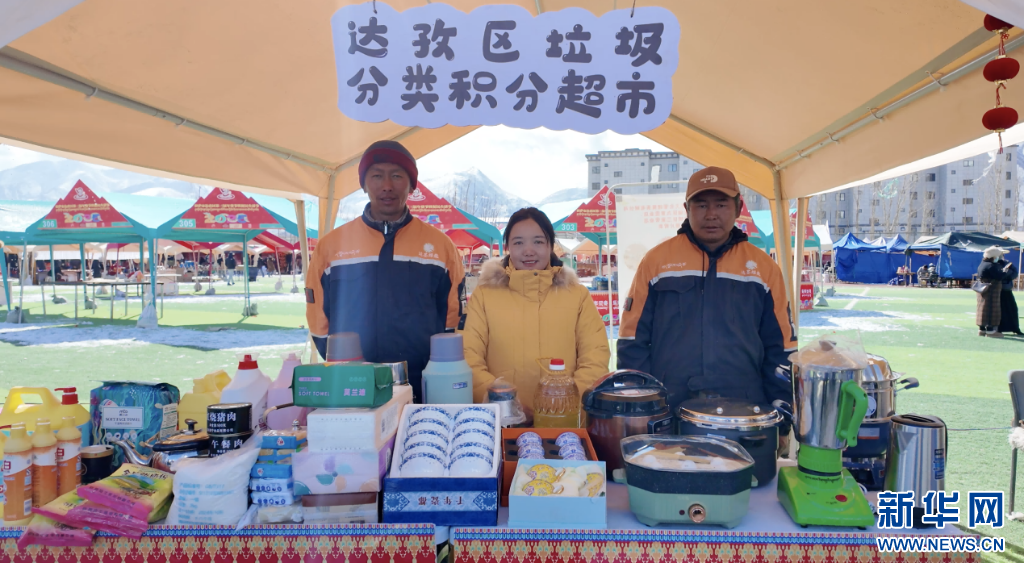 圖為達(dá)孜區(qū)年貨節(jié)垃圾分類積分超市攤位(2月18日攝)。新華網(wǎng)發(fā) 朱俊 攝