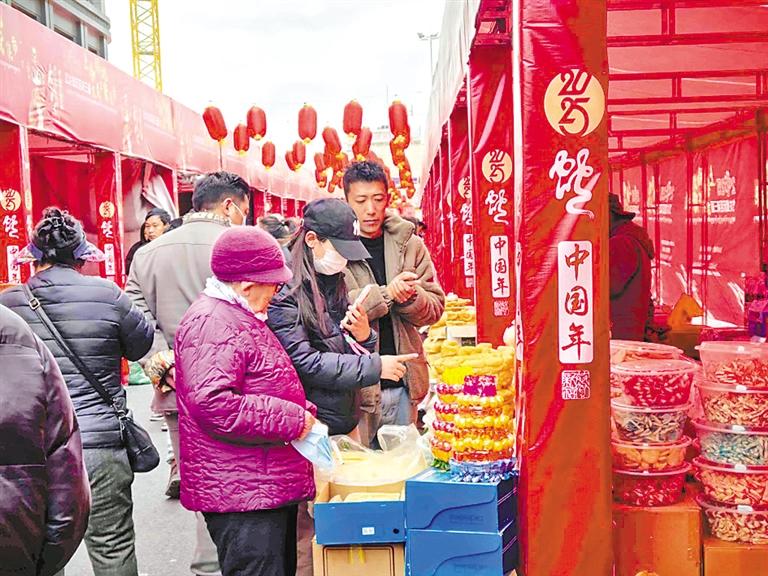 近日,拉薩市堆龍德慶區(qū)第三屆“上谷福地·吉慶年貨集市”開幕。集市上既有堆龍本土企業(yè)和合作社帶來的藏歷新年年貨、農(nóng)畜加工產(chǎn)品、民族手工藝品、傳統(tǒng)服飾,還有來自山南錯(cuò)那市相關(guān)企業(yè)帶來的特色產(chǎn)品。此次活動(dòng)共有118戶商戶參加,商品種類達(dá)百余種。 圖為市民正在購買“德嘎”。記者 拉巴桑姆 攝