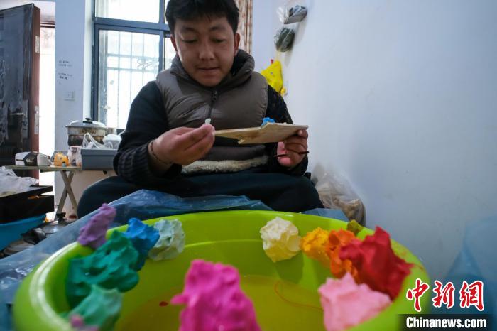 “我大概從初中一年級(jí)開始,每年藏歷新年前都和父親來拉薩捏酥油花,除了種地和打工,酥油花是我們家的主要收入來源?!?月20日,在拉薩市城關(guān)區(qū)吉崩崗街道一出租房?jī)?nèi),24歲的大學(xué)生扎西歐珠對(duì)中新社記者講述寒假捏制酥油花的經(jīng)歷。