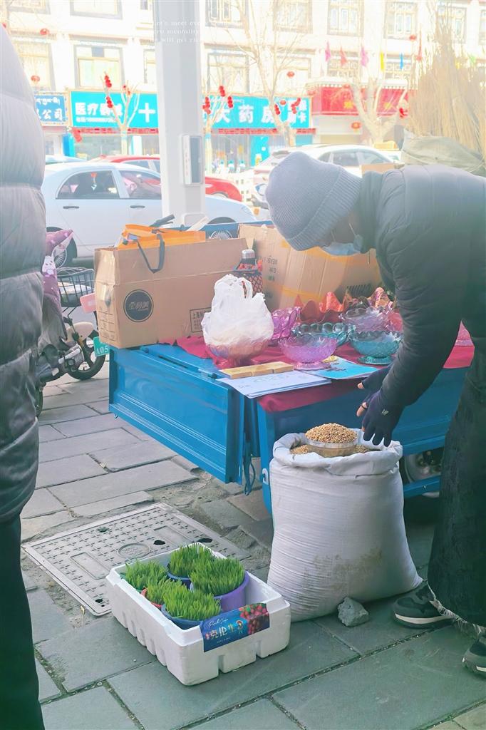 前來采購的格桑卓嘎阿姨,手里提著大包小包,臉上滿是笑意。她買了青稞酒、酥油、風(fēng)干肉還有青稞苗。新年時(shí),用青稞酒祈福,酥油茶招待客人,風(fēng)干牛肉和新鮮軟糯的拉拉、用酥油雕出精美圖案的“推”一起擺盤,供客人隨時(shí)食用。“今年‘古突’和‘朗嘎’是同一天,打算全家圍坐一起吃。家里布置都按習(xí)俗,擺好切瑪、德卡、青稞苗,再給門窗換上新的‘香布’。孩子們買了不少藏文對(duì)聯(lián),說是要貼門上,祈福來年順?biāo)臁Ш⒆觼韨鹘y(tǒng)市集,就是要讓他們記住咱們藏歷新年的習(xí)俗。這些年,市集多了些漂亮的藏式手工藝品,不過最有年味兒的,還得是這糌粑和青稞粒的香?!?/p>