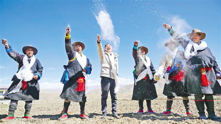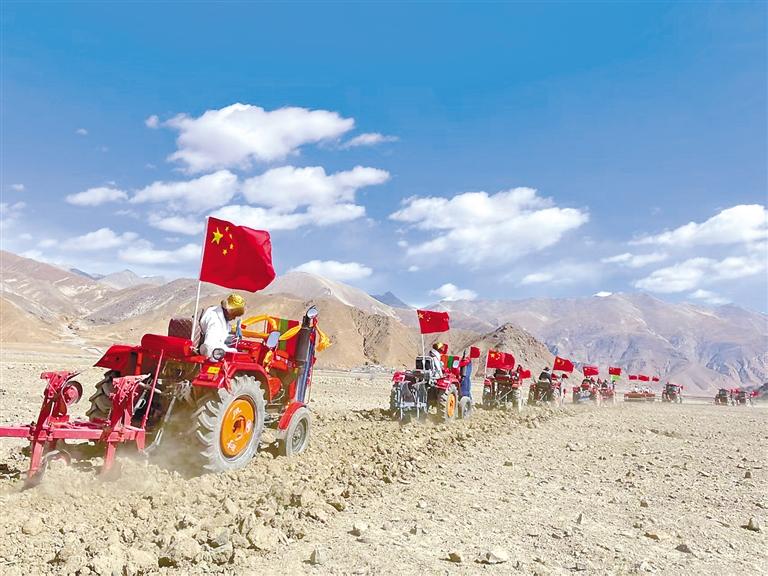在薩嘎縣旦嘎鄉(xiāng)旦嘎村、薩當村,村民們早早聚集在田間,喝酥油茶、品青稞酒,歡聲笑語中滿是對新一年豐收的期待。與此同時,現(xiàn)代農(nóng)業(yè)機械的轟鳴聲回響在田間,勾勒出傳統(tǒng)農(nóng)耕文明與現(xiàn)代農(nóng)業(yè)技術(shù)交融的生動圖景。薩當村村民次仁多吉感慨地說:“過去,12畝地要全家忙半個月;如今,有了機械化助力,僅需3天就能完成。機械化不僅提高了效率,還解放了勞動力?,F(xiàn)在,我有更多時間外出務工,增加收入。去年,我們家總收入突破10萬元?!钡└锣l(xiāng)農(nóng)牧綜合服務中心主任旦真介紹,旦嘎鄉(xiāng)早謀劃、早部署,組織農(nóng)牧技術(shù)人員、科技特派員深入各村持續(xù)開展青稞選種、科學施肥、灌溉等技術(shù)指導,確保今年全鄉(xiāng)農(nóng)業(yè)生產(chǎn)能夠順利開局、穩(wěn)步前行。