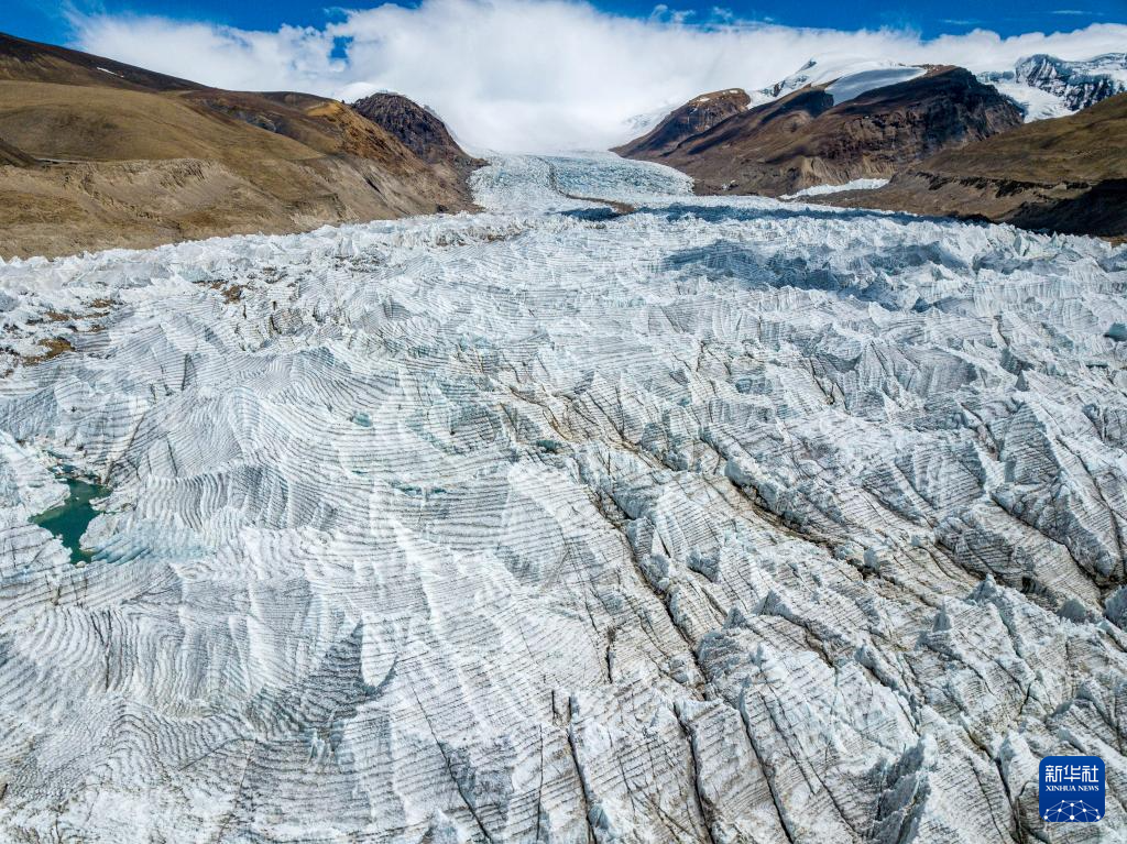 這是日喀則市仲巴縣境內(nèi)的杰瑪央宗冰川(無(wú)人機(jī)照片,2024年8月24日攝)。新華社記者 丁增尼達(dá) 攝 ??