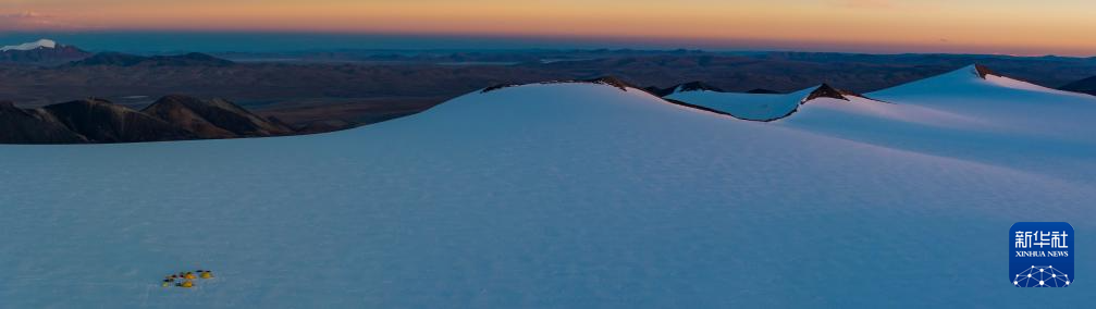 這是第二次青藏科考冰芯鉆取團(tuán)隊(duì)在海拔6100米的普若崗日冰原頂部設(shè)立的科考營(yíng)地。普若崗日冰原是世界上高原冰川的典型代表,是中低緯度最大的冰原,也是青藏高原上最厚的冰原(無(wú)人機(jī)拼接照片,2024年9月30日攝)。新華社記者 姜帆 攝 ??