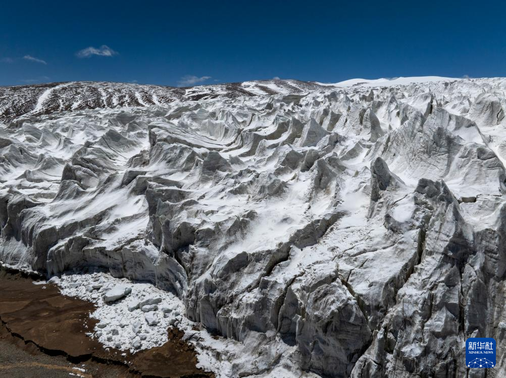這是那曲市羌塘無(wú)人區(qū)內(nèi)的藏色崗日冰川(無(wú)人機(jī)照片,2024年5月11日攝)。新華社記者 姜帆 攝 ??