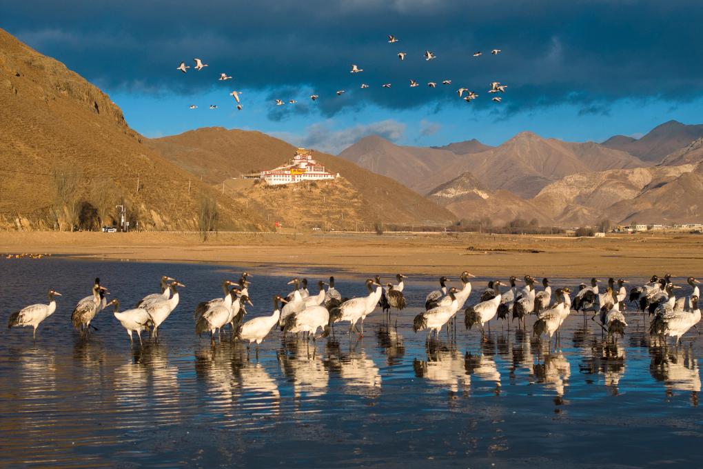 “潔白的仙鶴,請把雙翅借給我,不飛遙遠的地方,到理塘轉(zhuǎn)一轉(zhuǎn)就會回?!边@首在西藏家喻戶曉的民歌中提到的“仙鶴”,就是黑頸鶴。