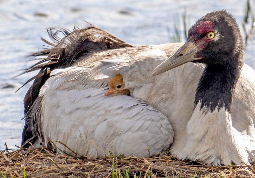 圖片中的這對黑頸鶴夫婦已連續(xù)8年在那曲市申扎縣申扎藏布濕地營巢育雛,并受到了普遍關注,每年都有攝影師前往拍攝。2024年,我們拍到了它們孵蛋的畫面。后來聽當?shù)匾氨T說,孵出的小鶴在兩個多月大的時候不幸夭折,這突如其來的打擊使得雌鶴抑郁了很長時間,有時會無緣無故地攻擊配偶,有時還會拔掉自己的尾羽,曾經(jīng)形影不離的夫妻倆很長時間不窩在一起休息……幸運的是,如今的它們已走出悲傷。2025年6月4日,我們又拍到了它們雛鳥出殼的瞬間,如今,新出生的小家伙正在茁壯成長。