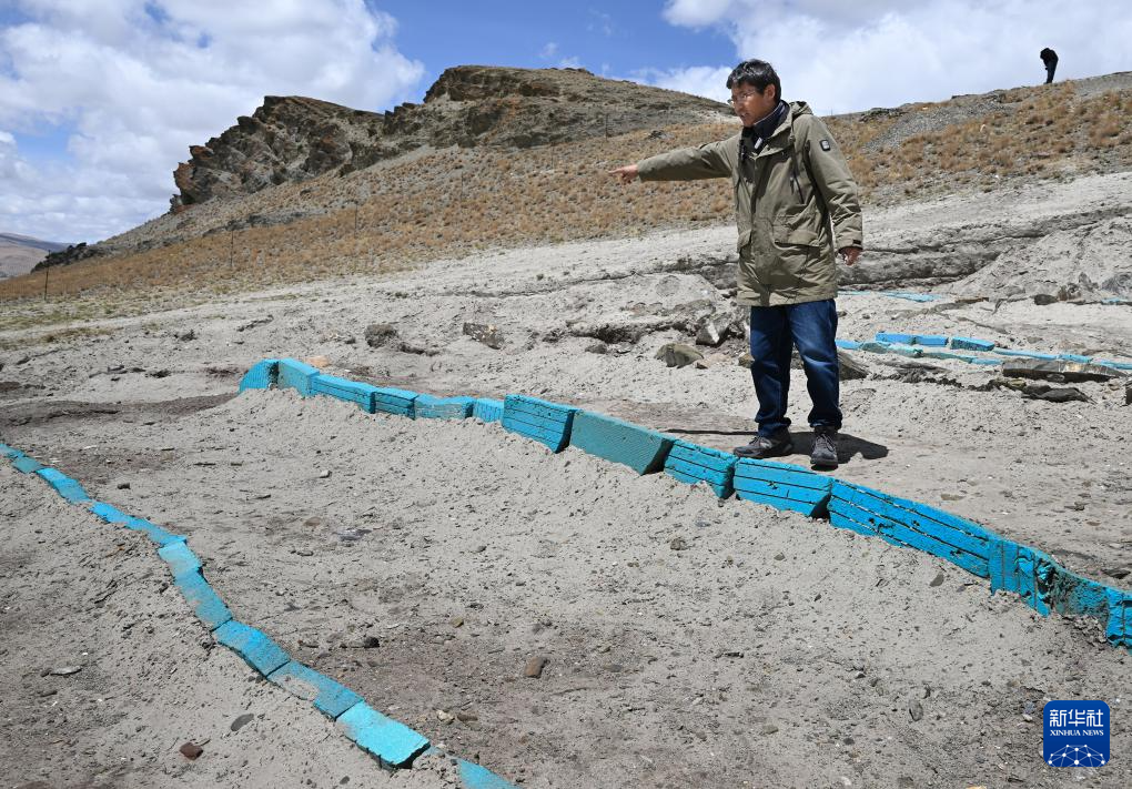 5月22日,聯(lián)合考古隊(duì)領(lǐng)隊(duì)夏格旺堆在瑪不錯(cuò)遺址向記者介紹考古發(fā)掘情況。新華社記者 旦增尼瑪曲珠 攝 ??