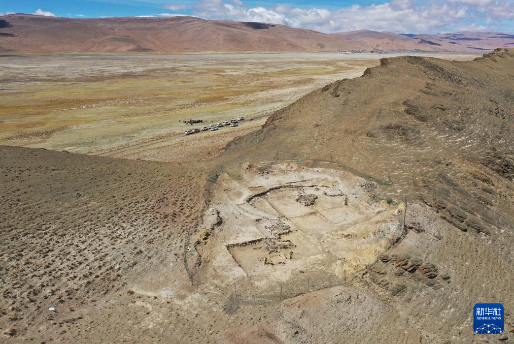 這是5月22日拍攝的瑪不錯(cuò)遺址第四期地面石構(gòu)建筑考古發(fā)掘現(xiàn)場(chǎng)(無人機(jī)照片)。新華社記者 李賀 攝 ??