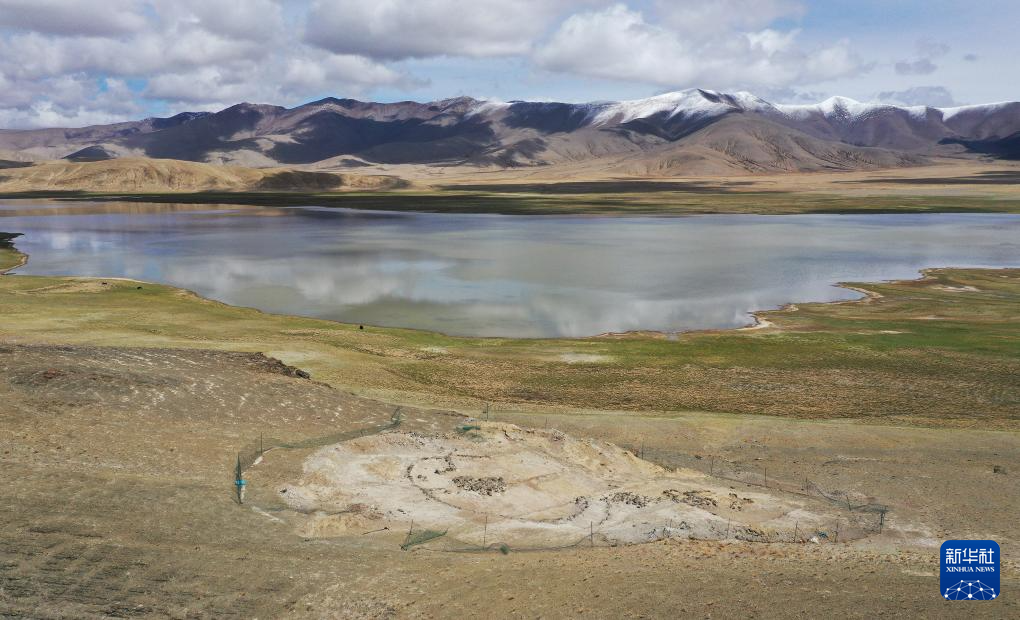 這是5月22日拍攝的坐落在瑪不錯(cuò)湖畔的遺址第四期石構(gòu)地面建筑考古發(fā)掘現(xiàn)場(chǎng)(無人機(jī)照片)。新華社記者 李賀 攝 ??