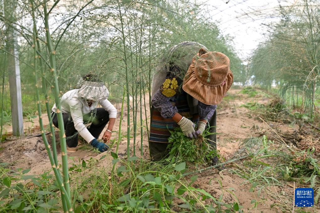 ?7月19日,西藏扎囊縣綠之源現(xiàn)代農(nóng)業(yè)科技股份有限公司的員工在有機蘆筍大棚內(nèi)手工除草。新華社記者 李鑫 攝 ??