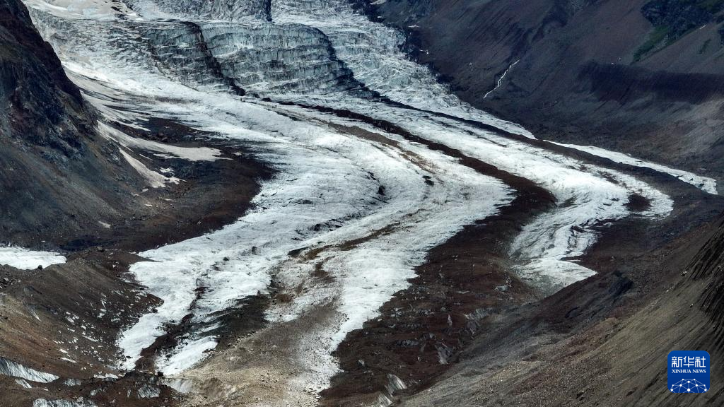 空中俯瞰祥格拉冰川(7月20日攝,無人機(jī)照片)。新華社記者 晉美多吉 攝