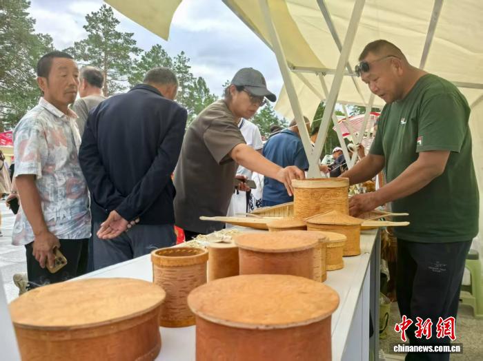 商戶在非遺大集銷售樺樹皮手工藝品?!〗x 攝